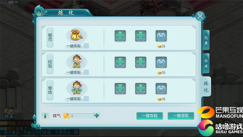《大话许仙》在资源获取上做了人性化的处理,玩家不仅可以在战斗活动中获得经验和货币,还可以在全新炼化系统中炼制属于自己的经验和货币。 人物等级只需到达20级,即可在背包中选择炼化即可打开道具回收专用的炼化系统,通过回收玩家无法使用或无用的物品,给予相应价值的精气。玩家根据自己的需求,选择性的消耗一定量的精气获取相应的资源(暂定银币、人物经验、修炼经验)。精气可以通过元宝兑换和炼化物品获取,每个炼制格每次炼制消耗150点精气值,每次的炼制的时间为90分钟。 点击精气右边的加号可以兑换精气值,玩家自行选择将暂不需要的道具进行精气炼制。无需等待即可换取等额精气值。精气是炼化的核心资源物品,有了精气值玩家就可以炼化经验、银币以及修炼丹。 经过90分钟的炼化玩家就可以放肆修炼,轻松加经验了,充分利用碎片化的时间来进行能力提升,真的很轻松呢。 《大话许仙》一款由咕噜游戏和芒果互娱联合发行的手游,以白娘子和许仙的故事为蓝本;融合日式与国风的美术特色,将传统仙侠神话题材与潮流Q萌风格完美结合;游戏采用经典而独具特色的回合制战斗模式;具有丰富的宠物、坐骑与伙伴系统;以帮派为核心,以组队协作为社交基点构建玩家生态系统,同时还为玩家提供了绿色、公平、动态调节的经济体系,玩法多姿多彩,带来玩家一个精彩纷呈的游戏世界。 了解更多相关信息,请前往http://game.yzz.cn/html/info-6086.html |