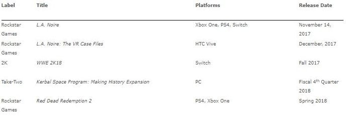 Take-Two(R星、2K的母公司)公布了2018财年第二季度(2017年7月1日至9月30日之间)的财务业绩情况。R星方面,其中提到《GTA5》销量已经突破了8500万份,要知道在今年5月份时的数据是8000万,也就是半年时间内它又卖了500万份。 根据NPD的数据统计,《GTA5》是美国有史以来最畅销的电子游戏(无论销量还是销售金额),在全球游戏榜单上它的总销量已超越《Wii运动》,仅次于《我的世界》和《俄罗斯方块》。与上一个财年同期相比,《GTA5》的销量同比增长,这款已经发售近5年的游戏依然受到玩家们的欢迎。 另一边,考虑到明年春季《荒野大镖客:救赎2》即将发售,Take-Two预计在2019财年(2018年4月1日至2019年3月31日之间)将会是公司创纪录的一年。侦探动作游戏《黑色洛城》销量超过了750万份,这款游戏即将在2017年11月14日已重制的方式登录NS、PS4和Xbox One平台。 在2K方面,众多系列游戏让它拥有稳健的发展渠道,获得优秀的成绩。今年发售的《NBA 2K18》销量就达到了600万份,摔跤游戏《WWE 2K18》也将在今年登陆NS主机平台。 |