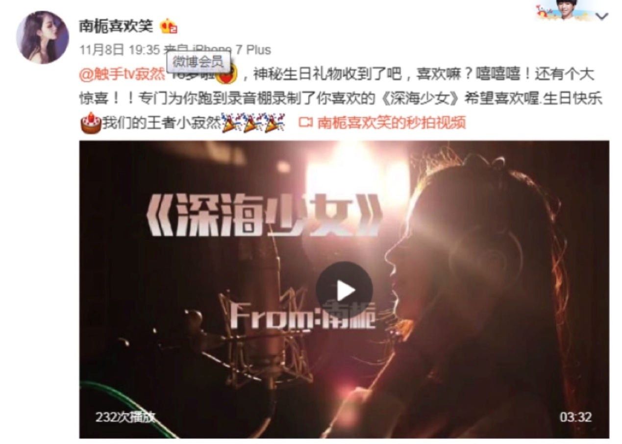 近日,某位游戏主播在直播间当着广大网友的面,拆自己收到的生日礼物,线上对全国各地的粉丝一一表示感谢。收礼物应该是开心的事情,不过对于这位主播来说,真的是尴了个尬了。 11月8日,是触手直播平台《王者荣耀》主播寂然的16岁成人礼,寂然选择在直播间当场拆开粉丝送来的礼物,与粉丝一起分享快乐,结果中途竟然拆出了一件不可描述的奇葩生日礼物——成人用品,顿时,直播场面顿时陷入尴尬。直播间的粉丝将这件事截图发到微博,引来不少网友围观,吃瓜群众们纷纷表示:粉丝送礼送的很切题;但也有网友表示人家刚成年就送成人用品是不是玩笑开过了头? 能送出这么奇葩的礼物想必一定不是一般人,不光小编对这位“奇葩送礼人”表示好奇,网友们早已按耐不住。这不就有好事儿的网友扒出,送这份大礼并署名“南栀”的女粉丝竟然来头不小,她曾经获得过SNH48招募资格,但后来又因学业,放弃了这次机会,不仅如此,她还获得过唱吧评选第二名,可以说是一个如假包换的“准女艺人”。不过这次她除了送了寂然这不可描述的成人用品开了个大玩笑外,还暖心地为主播的这次16岁成人礼录制了歌曲——深海少女,想必是想在开够玩笑之后,给主播一个大大的惊喜吧。 作为人生中里程碑式的日子,除了拆粉丝送的礼物之外,寂然还为自己的粉丝准备了价值数万的礼物,在当天直播过程中全部送给了粉丝,自己生日还贴心准备礼物送粉丝的,是不是没见过?寂然算一个!许多对于寂然不了解的人,可能不知道,年仅16岁的他,作为一位职业《王者荣耀》主播,用战绩惊人来形容他一点不为过。将韩信作为自己本命英雄的他,S8赛季两个月速达王者百星,成为国服王者百星第一人;S9赛季刚开始一个月,一人独霸5个国服韩信榜,实力爆表,被粉丝亲切的称为“天才打野少年”,是一个货真价实的超能少年。 如今少年已长成,愿他不忘初心,带着这份傲人的成绩和粉丝的祝福,在未来的电竞之路驰骋,打下自己的一片江山。 |