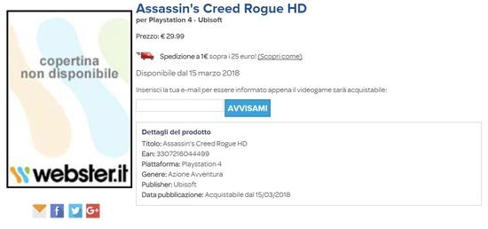 今日,意大利三大零售商曝光了《刺客信条:叛变》重制版,包括ePrice、ReluxShop、Webster,预定2018年3月15日登陆Xbox One,PS4平台。 《刺客信条:叛变》原版与《刺客信条:大革命》2014年同步发售,登陆了Xbox 360,PS3平台,随后2015年发行了PC版,是系列旧主机与新主机的分水岭作品,而且破天荒采用圣殿骑士作为全篇主角。 专注《刺客信条》系列的同人博客AccessTheAnimus跟进报道了此事,不过育碧官方还未回应,敬请关注后续报道。 |