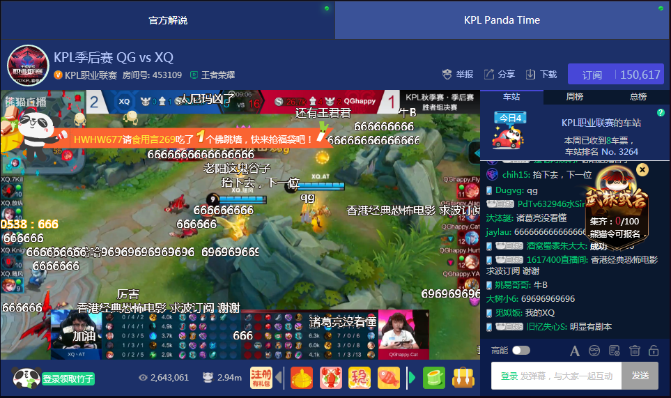 QG逆境反击提前锁定总决赛 熊猫直播全民声援无畏战神