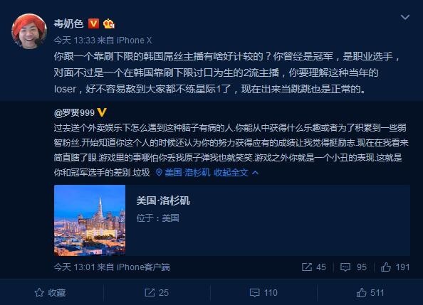 在12月4日,前中国著名《星际争霸》职业选手罗贤(ID:Legend)在美国洛杉矶举办的ZCUP MASTERS 索泰杯《星际争霸》重制版锦标赛的决赛中遇到了让人无比难受一幕。在时隔七年之后,罗贤再一次站在了《星际争霸》的决赛舞台上,而他面对的对手是来自韩国Afreeca TV,外号“屌丝”的主播Larva。本应是一场互相切磋的比赛,但Larva却在比赛中做出了一些毫无职业素养,素质低下的举动。 Larva在比赛中确立优势后,开始使用各种奇葩的姿势来羞辱这位曾经也出征过韩国赛场的职业老将。 虽然Larva最终也获得了比赛的冠军,但他的这种行为引来各方的不满。罗贤就在自己的微博中表示,Larva就是一个垃圾。著名《星际争霸》解说黄旭东也认为,这种行为就是Loser上位的心态。 而韩国粉丝更是表示Larva的形象着实令人恶心,会影响到韩国《星际争霸》的发展,并劝Larva老老实实做一个主播,不要涉及职业比赛。中国粉丝更是在Larva的直播间流言,呼吁Afreeca给予这位无德主播惩罚。 |