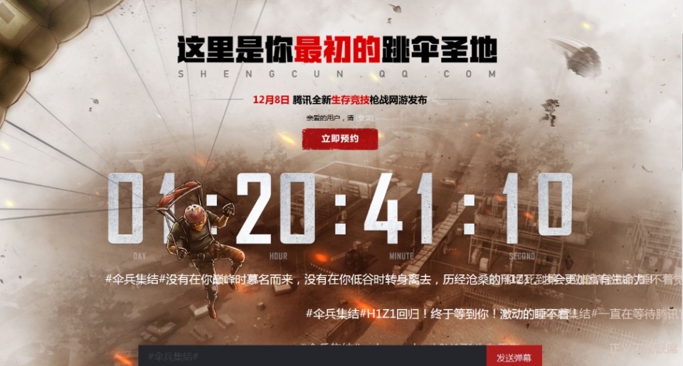 今天,腾讯上线了一个域名为“http://shengcun.qq.com/”的神秘网页。 目前该网页除了一个预约按钮外没有任何其他功能,而根据屏幕上的倒计时来看,具体内容将会在12月8日公布。不过根据屏幕上的弹幕可以看出,这似乎是之前传言已久的H1Z1国服官网。 在打开该页面的源代码后,也能发现其中的图片文件名含有“H1Z1”字样: 在今年年初,一篇名为《可能全世界的喷子都在这个脏游戏里》的文章把H1Z1带入了广大玩家的视线内,随着各大平台和主播的追捧,一时间“红衣军”、“Sao Ni Ma”以及“China No.1”等词迅速占领了热词搜索榜。虽然不久后就迎来了Steam国区锁区的问题,但依然没有影响玩家们对它的热情。 虽然不久后就传出了腾讯即将代理H1Z1国区的消息,但游戏中带有的血腥、暴力等敏感内容却让它很难光明正大的进入中国市场。好在经过几个月的努力后,虽然能够猜到游戏必然会为了符合政策审核而做出一些调整,但腾讯代理的国服H1Z1还是即将要与我们见面了。 |