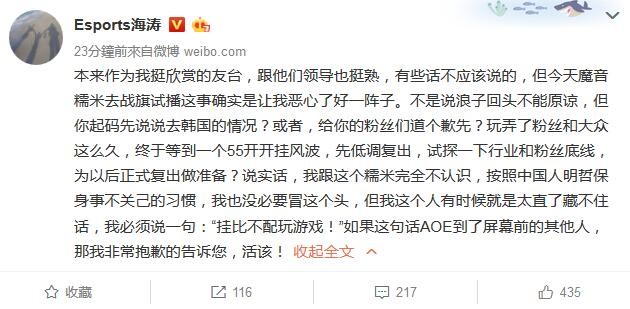 此前因为开挂风波被斗鱼封禁的主播魔音糯米,近日有了新动向,昨天,糯米在微博和战旗互动,看来要参与战旗展开的《绝地求生》绿色直播活动。 如今我们可以在战旗TV上搜到一个名叫“魔音糯米”主播,根据直播间信息(截至发稿时间,直播还在继续中),以及直播弹幕,看起来糯米应该是从韩国回来之后悄悄复出了。 对此@海涛也在微博上作出表态,涛哥的话也代表了很多人的心声;“不是说浪子回头不能原谅,但你起码先说说去韩国的情况?或者,给你的粉丝们道个歉先?玩弄了粉丝和大众这么久,终于等到一个55开开挂风波,先低调复出,试探一下行业和粉丝底线,为以后正式复出做准备?” 如今无论战旗还是糯米本人,都未对复出一事作出正式回应。 |