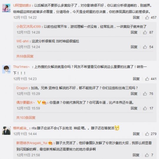 昨天对于国内的《英雄联盟》玩家来说是个值得庆祝的日子,因为在2017LOL全明星决赛上,去年的单挑王Uzi不仅蝉联了Solo King的称号,而且LPL梦之队还击败了LMS梦之队,成功获得全明星赛的冠军。在赛后,在网上随处可见恭喜Uzi的文章和留言。 不过有细心的小伙伴应该发现,参与这次比赛的女解说Rita也上了微博热搜! 尴尬的是,这次Rita小姐姐上热搜的原因却是在解说时表现太差。玩家们都认为,如果这次解说阵容中没有前职业选手神超在场肯定是要“翻车”的,网友们也表示无法接受这种“花瓶”解说出现在大型赛事的解说席上: 还有玩家盘点了Rita小姐姐自从出道以来的“经典”语录,各位自行感受一下: 你发现没有,双方的阵亡数和击杀数是一样的 Marin不会兰博,Deft不会寒冰 布隆Counter护盾型辅助 女警差点踩到了夹子!啊!夹子是自己的... 957是WE的短板(腿哥:???) Rookie这次MVP,原因是他已经得了六次 对面的死亡数刚好是这边的人头... 这个发条也出了香炉(其实是卢登的回声) 我觉得OMG还是很想赢的 加里奥的魅惑。 现在双方中单都出了输出装 这波露露对拼把虚弱交了,那这样的话,小炮下波对拼就得跟辅助配合了 这场比赛两边肯定有一个队伍获得胜利 下路锤石被打出了个被动 纳尔这波应该没想到,自己越塔闪现大招能推3个 不少网友对Rita频繁出现在大型赛事的解说席上表示无法理解,玩家们认为无论是现在的苏小妍还是以前的“球王”贝拉都要比Rita好,不少习惯了她们解说的玩家在听到Rita小姐姐的解说后都会觉得“辣耳朵”。 不知各位小伙伴怎么看这位美女小姐姐的解说呢?欢迎说出你的看法! |