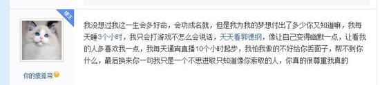 最近卢本伟开挂事件越演越烈,而卢本伟本人也在微博发了一篇“道歉文”之后销声匿迹,估计是想避避风头,过段时间再直播。但没想到,卢本伟以前做的缺德事被人爆了出来。 随着英雄联盟游戏的慢慢没落,越来越多的主播寻求其他出路,在绝地求生之前,王者荣耀一度被大家认为是替代英雄联盟的最佳游戏。而爆料人就是一名王者荣耀每个赛季都是百星王者区第一,s4时候打了370星超级打手。 当事人原本有自己稳定的职业,也顺便代打。因为喜欢卢本伟,喜欢王者荣耀这款游戏,放弃稳定的生活去上海加入卢本伟工作室,希望能实现自己打职业、做主播的梦想。 但随之而来的确是欺骗、失望。卢本伟并没有像约定的一样教当事人怎么直播,也没有帮忙查房带流量、对于工资的事更是绝口不提,甚至连房间水电费、伙食费都要当事人自己出。 卢本伟说希望当事人打个区第一证明当事人的实力,他会帮当事人推荐职业队,结果不分昼夜的上分,5天内帮卢本伟从砖石打到50星,却被卢本伟嫌弃太慢了。 当事还爆出了帮卢本伟打上50的王者荣耀号。 最后,是当事人对卢本伟的控诉。 以下为当事人原话:我真想问问,那个时候王者荣耀那么火,我那个时候每个赛季都是百星王者区第一,s4时候打了370星,我没遇到你卢某人,或者我还是个代打,但是我只是一个月收入能有最少1万起步,或者去打职业也许拿到了好的成就。但是遇到你,你给我梦想的希望,一次次让我经历希望绝望,你知道嘛,人这一生有希望真的是好事,但是你知道这辈子最痛苦的事是什么嘛,一个人给了你希望亲手让你绝望,还在你伤口上撒盐,我就想问问你,你的心真的跟我一样是肉做的嘛?我没想过我这一生会多好命,会功成名就,但是我为我的梦想付出了多少你又知道嘛,我每天睡3个小时,我只会打游戏不怎么会说话,天天看郭德纲,像让自己变得幽默一点,让看我的人多喜欢我一点,我每天通宵直播10个小时起步,我怕我做的不好给你丢面子,帮不到你什么,最后换来你一句我只是一个不思进取只知道像你索取的人,你真的很尊重我真的。 |