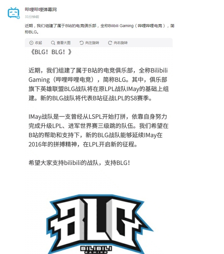 随着《英雄联盟》LPL转会期结束的日子越来越近,各家新入局俱乐部的相关信息都逐渐公布出来。今天上午,Bilibili(B站)在官网发布了一条新动态,称旗下收购了原LPL战队IMay,并将在IM的基础上组建一支名为“Bilibili Gaming”的新队伍。 从官宣中不难看出,在S8中IM将要彻底告别观众的视野,取而代之的则是BLG。不过关心IM选手去向的小伙伴大可不必担心,简单来说这次IM只是换了个东家、改了个名,而原先所有的选手、教练组等成员应该基本维持不变。 虽然IM从进军LPL至今传出过不少负面资讯,例如选手的不当言论、“鼠标战队”等事件也让队员们饱受质疑,不过能够在短短一年内完成从LSPL到LPL再杀进世界赛的“三级跳”壮举,也从侧面证明了这支战队的实力。如今这支战队更名BLG重新出发,是否能为我们重现当年三级跳的荣耀?让我们拭目以待吧! |