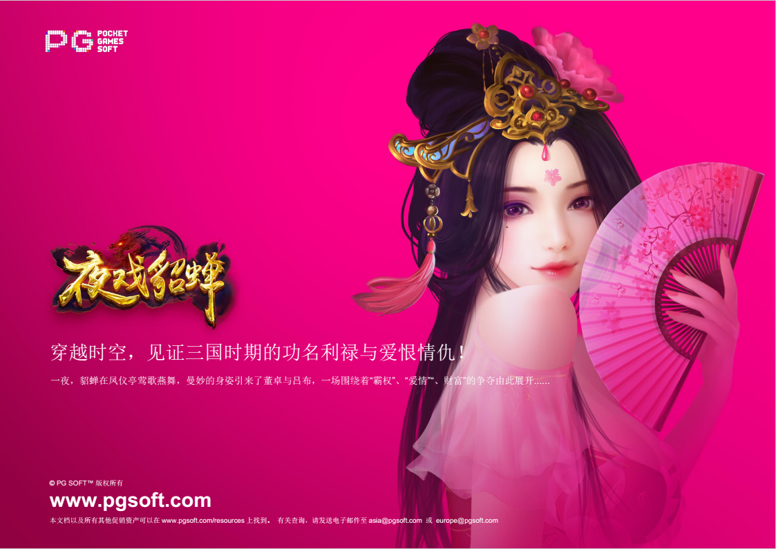 PG SOFT软件公司发布新游《夜戏貂蝉》 见证功名利禄与爱恨情仇