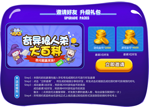 圣诞节的广告打得越来越早,提前一个月就作势要掏空钱包里的软妹币,各路shopping大狂欢,为啥你还没收到礼物?喜大普奔的是,今天是上班/学日,可以让自己徜徉在文件与知识的海洋中,暂时忘记圣“单”的烦恼,做自嗨到最晚的人,佛系星人没收到礼物也不急不恼,因为有《奇异狼人杀》,能满足你的所有圣诞愿望! 圣诞愿望之一:想要男/女朋友 “这张牌我保了,出她先出我”、“低调carry ,最为致命”、“我是预言家,昨晚验了七号,她是我女朋友”,“玫瑰糖果布娃娃,巧克力蛋糕么么哒想送就送”,想要打出如此优雅的撩妹/撩汉操作,就在爱奇艺官方出品的娱乐社交推理手游《奇异狼人杀》,目前游戏即将于明年1月11日开启安卓测试,花式送礼物,遇见你的他/她,明年不再圣“单”。 圣诞愿望之二:只想要money 男/女朋友太遥远,还是money最靠谱,现在预约《奇异狼人杀》, 可立即免费获得超级、豪华、至尊三重游戏大礼包!(礼包码将于游戏开测前发放到您的预约手机上)邀请好友还有更多惊喜,成功邀请1位好友马上获得2000游戏金币,成功邀请3位好友,金币马上翻倍,可获得4000游戏金币,邀请好友一起嗨翻圣诞奇异狼人趴! 圣诞愿望之三:想要圣诞礼物 说来说去,还是想要圣诞礼物?《奇异狼人杀》送你佛系三连:没事、别哭、问题不大,没有实物奖励怎么能算圣诞福利,马上关注“奇异狼人杀”微信公众号,点击微信公众号菜单栏“福利活动”,参与活动领奖品,爱奇艺会员月卡、小米手环+充电宝、UBL音箱、雷蛇耳机+鼠标+键盘等等等等,免费礼物拿到手软,你想要的这里都有。 圣诞奇异狼人趴,超值福利送不停,来《奇异狼人杀》满足你的所有圣诞愿望! 掌握第一手开测资讯 想要了解第一手游戏资讯、找到志同道合组局开黑的小伙伴,更有机会免费领爱奇艺会员卡、机械键盘、充电宝等精美奖品,请通过以下渠道关注我们: |