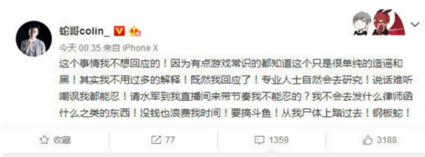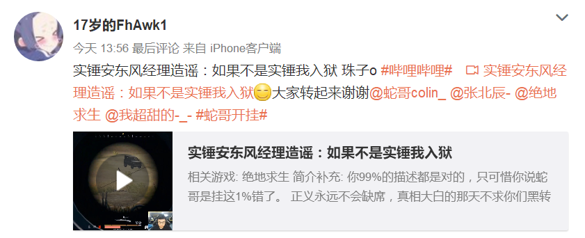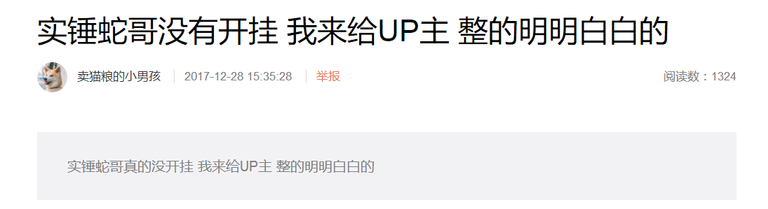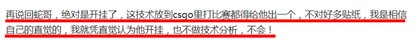 近日,随着“蛇哥开挂”事件的越炒越热,各大UP爆料出的所谓实锤让我等吃瓜人士“应接不暇”。昨天,安东风经理再次放出分析视频,并回应蛇哥博文称“实锤蛇哥准星非正常修正:如果不是实锤我入yu”。而此番言论再一次引爆了舆论的G点,似乎在舆论中坐实了“蛇哥开挂”。 然而就在安东风经理发布这个分析视频不久后,就有技术大神就这个视频进行了分析,并对视频中“蛇哥开了自瞄挂”的论述进行了分析解释,同样的,该技术大神也上传了同样的视频来佐证自己的观点,并称“实锤安东风经理造谣,如果不造谣他入yu”。 而今天下午,一位疑似实锤安东风经理造谣的视频发布者将其观点论述成了文字版,并配以图片加以分析,具体该位博主说了什么,有兴趣的小伙伴可以搜一下文章,在这里就不多加阐述。 安东风经理和该位技术大神“公说公有理婆说婆有理”,究竟谁是谁非,谁也说不准。但在这里最让我纳闷的是,蛇哥对此次事件已经回应称将在一个星期内在线下进行直播,并请技术人员、反挂专家等见证,以自证清白。 然而就算如此表态,还仍有网友在其动态下方进行评论谩骂; 仍有大V发文“张冠李戴” 更厉害的是,还有人“凭着直觉就能看出蛇哥开挂”。既然凭着直觉就能看出开不开挂,那反挂系统拿来干嘛?反挂专家全部下岗请你一个不就好了? 对于这些行为,我实在是不能理解,既然蛇哥说了会在线下自证清白,有些为何就不能再等等几天,反而还是一昧地谩骂、发不实消息来引导舆论?难不成真有如蛇哥所说的“有人想搞斗鱼和他”? |