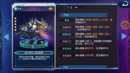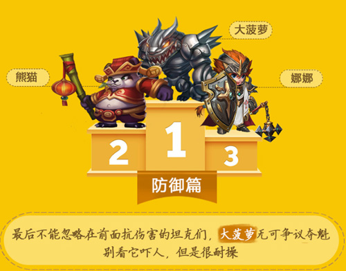由游奇互娱推出的《萌新出击》是一款创新动作卡牌手游。卡牌、养成、动作操控等各种元素的完美融合让这款游戏极具操作性和趣味性。而庞大的英雄阵容则是《萌新出击》另一个非常亮眼的特色,防御系、输出系、辅助系,玩家在配置阵容时需要根据不同的敌人采用不同的排位。 我们知道在卡牌游戏中,冲在最前面吸收伤害的永远是坚硬耐操的坦克们。说起坦克,相信《萌新出击》的玩家们对大菠萝都不陌生,官方给他它的介绍文档非常简明扼要:“能打能抗 全能猛兽”。而在《萌新出击》官方最近给出的一组数据中,我们可以很明显地感受到玩家在选择防御型英雄时对大菠萝的钟爱,其次则是熊猫和娜娜。 作为一只长相略霸气的机械猛兽,大菠萝的长相可以说相当不讨喜,但是能获得“首席坦克”称号却绝非浪得虚名,我们一起来看看大菠萝的强大天赋和技能。 这么强大的英雄,试问哪位《萌新出击》玩家不想拥有一只呢? 如果你想要更迅速获得S级神将,不妨来参加《萌新出击》元旦三天的惊喜活动。双倍掉落买体打折,让你更快拥有大菠萝。不容错过哦! 了解更多相关信息,请前往http://game.yzz.cn/html/info-5226.html |