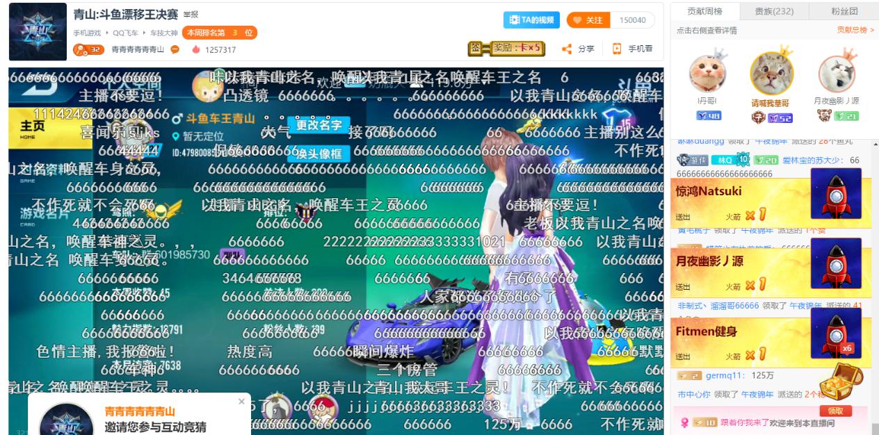 QQ飞车手游版上线已有一个月,游戏一上线仅仅七天就突破了2000w人。可以说火爆程度非同寻常。在游戏上线没多久,斗鱼直播平台惊现QQ飞车大神,更是一夜爆红,热度上百万! 虽然青山在直播还是个新人,但是礼物排行榜一直都是排名靠前,从斗鱼的巨星主播榜单上“青山”的周榜仍然是手游的第一名,最为斗鱼目前手机游戏板块的牌面大主播,每天的直播人数以及直播的粉丝弹幕就说明受到的欢迎!在各大直播界QQ飞车的头部主播当中,目前还没有看到哪个玩飞车手游的主播有这么大的影响力,想来在这个吃鸡和王者荣耀当道的时代,“飞车党”们也要崛起了!谁说我竞速游戏没有春天? 不过,青山这粉丝可不是白吸的,查了一下排行,目前稳稳的排在国服第一名,超级技术型!从2010年开始玩QQ飞车端游一直到现在,7年经验的“老江湖”让他在斗鱼比赛中脱颖而出,一举夺得“QQ飞车漂移王”的称号。用板车跑直接超人一圈,让其他的赛车手连尾灯都看不到,着实粉丝们彻底看掉下巴。最厉害的就是板车玩极限贴边漂移,就问你这过弯技术服不服? 有了这么牛叉过硬的技术,在这么短时间内迅速蹿红,成为斗鱼手机游戏区排名前列的“当红炸子鸡”新人霸主级主播,也算是水到渠成。斗鱼这一年游戏直播的场子也是非常热闹了,继“农药一哥”张大仙入驻斗鱼后,现在又培养出了漂移王青山,以青山目前的粉丝量和人气,相信很快就会和大仙并列为手游区的“两大天王”,一统手游的天下。 一开播就有120多万,看来“QQ飞车一哥”之名青山实至名归,以我青山之名,唤醒车神之灵,在QQ飞车手游圈成为了无人不知无人不晓的漂移王。斗鱼新的一姐一哥,2018或许有新的变化。 |