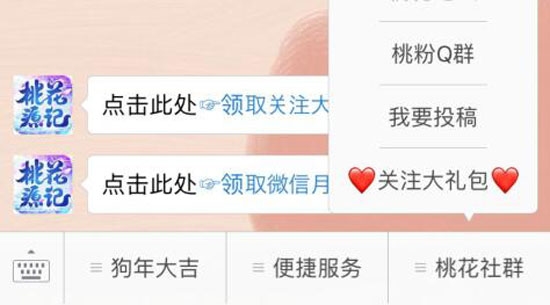 桃笋年光,刹那芳华,十里桃源,欢乐相伴,开篇请先允许小编安利一下本月《桃花源新》出的微信专属头像框。桃笋年光冒泡框。桃花坞里桃花庵,桃花庵下桃花仙,淡杏色的背景缀以粉嫩的小桃花,看起来风雅低调有内涵,甚至嗅到了一丝初春萌动的征兆,是一款男女皆适用又十分耐看的冒泡框了。获取的方式也非常简单!过去的冒泡框需玩家通过运营活动或是限购礼包购买,这次可以免费获得 下面小编整理了两种免费拿冒泡框的方式 【关注微信即送桃笋年光冒泡框】 关注微信公众号“桃花源记手游”后,在后台回复关键词【关注】,或点击菜单栏中的【关注大礼包】就可以进入微信关注礼包页,复制该礼包码,进入游戏内的【福利】界面即可兑换。 【微信签到攒人品,月月送神兽】 关注微信公众号“桃花源记手游”点击菜单栏中的【签到攒人品】,进入签到主页面,每日签到可以获得5点人品值,每月签到满20天后,还有机会获得神兽火麒麟!人品值积攒到足够数额后,可以前往人品商店兑换桃笋年光冒泡框 除了冒泡框之外!还有二星战魂、天启石碎片无限供应,快去关注《桃花源记》手游微信公众要领取礼品吧! 【关于桃花源记手游】 深圳淘乐携手云畅游戏匠心巨制2017国民良心回合手游《桃花源记》,超经典2D回合MMORPG掌中焕新!游戏由端游原班人马倾情打造呈现,人气主角唯美亮相,自由交易火热登场!八大职业制衡玩转跨服PK,萌宠激斗相随与你梦回桃源,与众不同的细腻画面,汇聚经典的丰富玩法,还能随时随地语音撩妹互动结婚!良心回合,欢享福利,一切尽在《桃花源记》手游! |