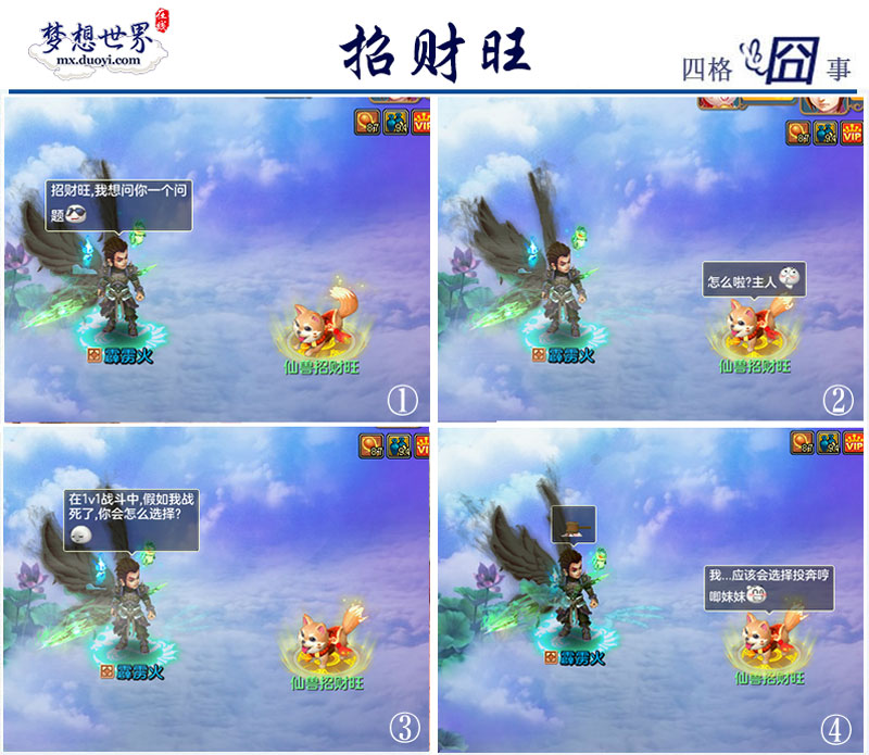 《梦想世界》元宵庆典火爆开启,逛花灯、猜灯谜,还有狗年仙兽拍卖与你共度元宵!元宵佳节即将来临,梦想大陆上的萌娃萌宠们已经闲不住啦,快来和小编看看都发生了哪些故事吧! 狗年招财旺 作为狗年仙兽,招财旺在梦想大陆混的风生水起,不少侠客都已经将它收入囊中。狗是人们最忠实的朋友,也一向是我们最好的伙伴,但图中的这只却不一样! 生宝宝 听说妈妈要生第二个宝宝,童宝的回答可以说是十分成熟了。 笑一笑十年少 我雷少出门买个糖,回来要是你们还笑,在座的各位都要挨揍! 关于《梦想世界》 《梦想世界》是多益网络推出的高端回合战斗网游,拥有富有策略的战斗系统,11个流派421种招式,相生相克变幻无穷。独创电影式副本,带你穿梭古代未来,结交关羽,飞上太空战机械之王,探索超乎想象力的奇幻世界。随心打造个性角色,华丽翅膀、拉风坐骑、多彩光环、超萌小精灵等自由搭配。实时语音畅聊,结交游戏好友,遇上唯美爱情,一起闯荡武侠江湖。 了解更多相关信息,请前往http://mx.yzz.cn/ |