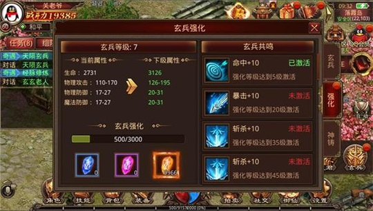 多渠道获取 轻松开始战力养成 作为强大的属性加成装备,玄兵的获取却并不难。在新版本上线后,玩家们都可以通过引导任务,直接获取最初的玄兵,并开启崭新的玄兵界面。玄兵养成的方式类似于仙翼,为等级成长,在整个强化过程中共需要消耗三种材料,每一种材料都会提供一定的经验值。此外,每个级别的玄兵都对应着不同的经验值,通过不断地提升经验值即可升级并解锁更加强大的属性。玄兵神铸功能则为玩家们提供了更加多变的养成路线。消耗固定的材料,将可以提升当前玄兵的品阶。同时提升玄兵的基础属性,以及玄兵技能。神铸玩法也不仅仅是属性成长,在神铸后玄兵还会在外形上发生变化。