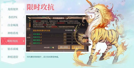 神格攻抗 为战力全新加成 战力一直是《轩辕传奇手游》中玩家们追求的目标。本次更新将开启神格系统,广大天命者们历经渡劫之后可激活半神特质,提高宠物等级上限,开启指定通天装备第四孔,为其战力再添新篇章。此外,可开启“限时攻抗”玩法,在固定时间周期内大幅提升攻抗属性,让战斗力如虎添翼!