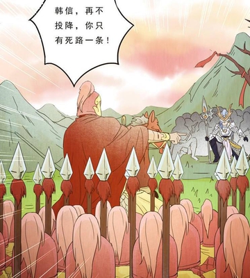 无数的士兵包围了韩信,韩信在人群中誓死奋战,士兵的首领说道:“韩信,再不投降,你只有死路一条。”韩信伤痕累累的说道:“我韩信,就算是战死,也绝不投降。”韩信缓缓的站了起来,就算是死也要死的有尊严。