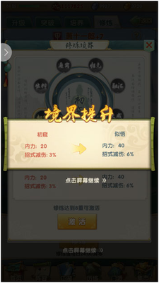 修炼—提升重数——激活境界,《大掌门2》中全新的境界玩法基本上就是一条互相关联的循环,每日活跃度足够的话,通过阅历、侠魂殿就能获得很多修炼丹,进而加快侠客境界的提升速度。另外报告各位掌门一个好消息,4月13日至15日,游戏中将开放踏青系列活动,只要登录游戏,或者通过节日美食兑换,便能获得玄蛇胆、化身符、甲级装备碎片自选、淬火精华等珍稀道具,千万不要错过哦!巅峰武侠RPG手游正统续作《大掌门2》请你来战!更多资讯,请百度搜索《大掌门2》,精彩不容错过!