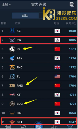 实力仅在伯仲间 凯发娱乐关注LOL全球战队排行榜