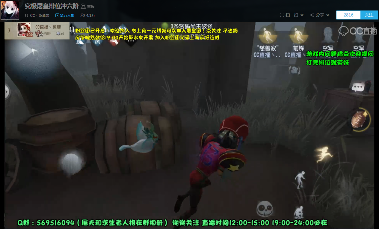实力碾压!监管者榜单大神CC直播、兔菲酱独家技巧首曝