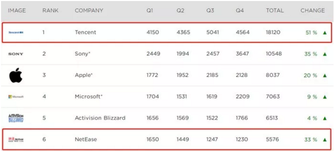 全球收入最高25家游戏公司 腾讯、网易、完美等入围