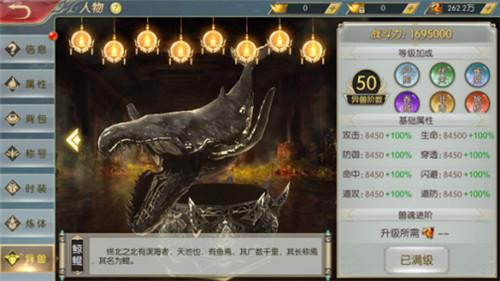 异兽培养 吞噬成长再升级 生于混沌之中的异兽,依靠吞噬世间生灵来不断进化,太白金星天神下凡,用捆仙索捕捉并交给了主角。玩家在游戏中可开启一段全新异兽培养之路,通过进化解锁形象,越是高阶越是稀有,但也越加霸气侧漏。也为众仙家快速提升战力,封魔更高效。