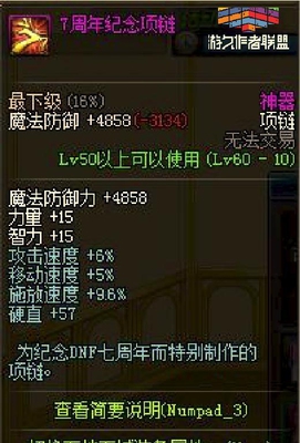 六周年开始后,项链成为了周年庆的一大亮点,六周年的PK场属性这么强,七周年的项链属性也成为了大家期待的。 七周年的手镯与戒指的属性与六周年是一样的,但是七周年的项链则是六周年的升级版,因为六周年仅是攻击速度和施放速度的提升,而七周年的项链则是提供了三速,2%的攻击速度和施放速度,5%的移动速度,而进入PK场后则是6%的攻击速度,5%的移动速度,9.6%的施放速度。因此七周年的首饰一出现就PK党玩家称为逆天PK神器。 八周年/九周年