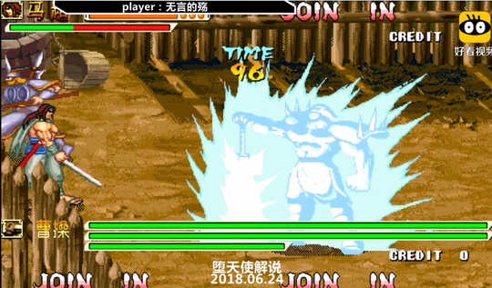 但同样是街机游戏,在《三国志》中,不可一世的枭雄曹操虽然也是最终BOSS,但血量和战斗力却仅相当于一个小兵?攻击方式只有扔炸弹,但玩家要在十多秒内将曹操击杀,不然曹操就会逃跑,这样就不算完美通关!