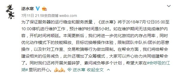 《逆水寒》今日的更新中继续对游戏客户端进行了优化,包括游戏的内存占用率等。 另外,体验过《逆水寒》的玩家都知道,游戏中的热门服务器排队的可怕,今日《逆水寒》对游戏中的热门服务器,诸如紫禁之巅等的排队体验继续进行了优化。 这次客户端的优化包括: 客户端继续优化: 1)进一步降低了内存占用,优化8G内存玩家的游戏体验。 2)更高效的利用CPU,降低了CPU的占用率。 3)增加了低帧率模式,可以在画面设置中选择。 更多玩法、操作的更新优化内容,可查看《逆水寒》官网。 |