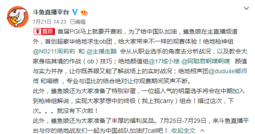 以游戏直播为核心竞争力的斗鱼平台,发展势头愈发迅猛,在继续完善游戏直播项目布局、深化直播IP体系建设的同时,始终不忘强化直播内容的质量。过往给用户带来许多欢乐的“主播+游戏”模式仍旧不断壮大,为了适应电竞游戏市场的发展以及用户需求,斗鱼在赛事直播上不断进取,逐渐显露这一方面的硬实力。 7月25日,PGI2018全球邀请赛柏林总决赛将点燃战火,届时,包括4AM和OMG两只中国战队在内的全球各地20支战队将在柏林为国家荣誉以及不菲的奖金而战。对于这样的电竞盛事,不管是职业选手还是普通玩家,亦或是路人观众都不免充满了期待。斗鱼在不负众望拿下赛事直播权后,备齐了内含10M蓝光超清直播源、豪华OB团以及丰富直播福利的“赛事直播空投”,一齐投往了柏林上空。 近日,斗鱼在官方微博上正式公布了平台解说此次赛事的OB团成员,瞬间引起了舆论的热议,纷纷表示期待。斗鱼将OB团成员分为三组,NB211周莉莉、主播走黯搭档组成“绝地枪神组”从选手技术、战队战术层面对比赛进行专业的实时分析,具有极强的实战教学指导作用;城小楼、阿聪君搭档组成“绝地颜值组”,顾名思义,这组解说实力与颜值并存,让你既养眼又能实时掌握赛场动态;而由斗鱼主播嘟师傅和喵粮组成的“绝地相声团”则是以轻松幽默的风格,缓和场上扣人心弦的瞬间以及观赛用户们的紧张情绪。 三组“战地记者”小分队之外,斗鱼还隐藏了一个特别彩蛋,一位超人气的明星选手将会在中期加入到枪神组解说,实现众人梦想中的终极(我上我carry)组合。促成如此豪华的解说阵容,准备iPhoneX、iPad、电竞外设和鱼翅等总价值高达200万元的奖品,斗鱼所作的这一切都是为了用户更好的观赛体验服务,而其背后体现的则是斗鱼在赛事直播体系升级上的努力。 随着网络带宽技术的不断发展以及人们对于电竞这一体育项目的认可,单纯地看主播打游戏以及不能满足用户的需求了,大众对于高质量的电竞赛事直播有着愈发紧迫的需要。斗鱼早在直播平台初现、市场上风起云涌的时代起就潜心布局属于自己的游戏直播体系,因此在人才、经验、流量、用户上有着足够多的优势,足以让斗鱼在发展游戏赛事直播时,率先起步。 无论是斗鱼稳定持续拥有直播权的LPL联赛、KPL联赛,还是近年来因为赛事直播实力过硬而获得的CSGO Faceit Major大赛、LOL洲际挑战赛、包括本次PGI,都是斗鱼在赛事直播体系升级上所取得的成绩。签约职业选手,引进官方解说,举办自制赛事,可以说斗鱼在赛事呈现上所作的布局是合理且有规划的,每一步都走得沉稳有力,在一次次电竞赛事的“虚拟战火”中,展现着平台自身作为头部直播企业的真实力。 |