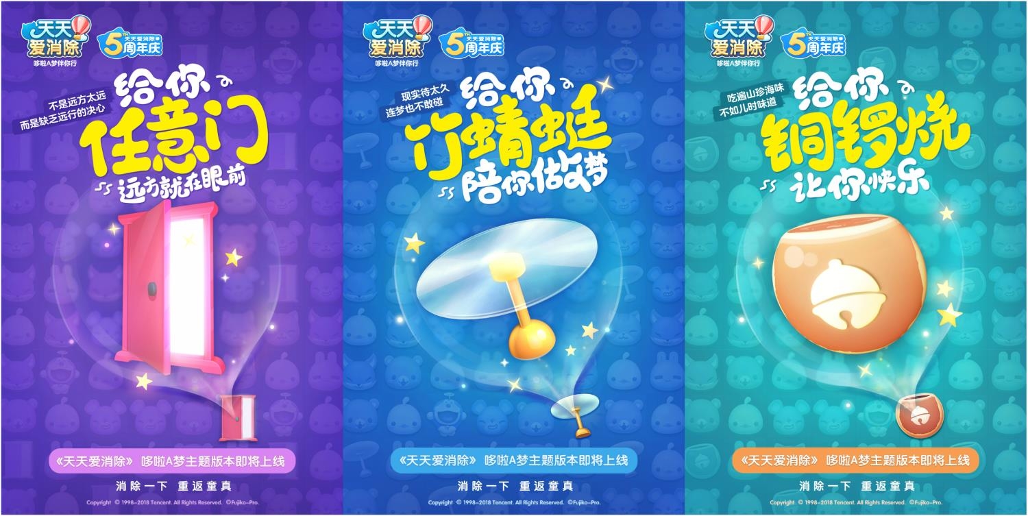 从2013年国内手游产业初步形成以来,市场的主流趋势不断更新,从最初的休闲游戏,到之后的卡牌回合与MMO,再到近年大热的吃鸡、MOBA等竞技类产品,手游的范围不断扩大。市场的成熟化,使得游戏玩家的口味也变得越来越刁钻复杂。面对变化迅速的的市场需求,早期产品的淘汰率无疑是极高的。在国内手游市场的发展历史上,曾经出现过许多表现惊艳的产品,但随着更多新风口的出现,绝大部分都只是昙花一现。 作为腾讯手游发展的首批种子选手,《天天爱消除》已经迎来了它的五周年,在国内休闲品类的领域,该作算是不折不扣的“常青树”。2013年8月上线10天注册用户即突破4千万,DAU达到2500万,迄今为止休闲游戏经历了几代产品的变化,但《天天爱消除》依然维持在品类乃至整个手游市场的前端;而截止到现在,《天天爱消除》依旧位于IOS游戏畅销榜的TOP50队列。 可以说,其见证了中国手游市场的五年变迁。据了解,在《天天爱消除》的活跃用户中,有60%是从游戏上线留存至今的老玩家们。在产品迭代速度极快的今天,尤其还是用户流失较快的休闲游戏品类,它的表现自然引来了许多人的好奇:一款休闲游戏,到底是怎样获得众多玩家长时间的关注与喜爱的? 手游也可以长情:玩法创新才能留住用户 在国内早期的手游行业,一款手游的寿命可能只有半年,休闲游戏品类中这种情况更是屡见不鲜。许多业内人员认为,手游始终是一种快消品,游戏内容具有极强的消耗性,产品生命力短暂,很难让玩家长时间钟情于此。但《天天爱消除》历经5年依然深受用户喜爱,其根本原因在于能够迅速抓取并持续关注用户需求。在《天天爱消除》的五年历程里,我们可以看到,游戏在原本的基础玩法上进行了各种各样的创新尝试: 2014年,游戏加入步数闯关的冒险模式,游戏从原本单一的限时经典模式升级为更加多元化的双模式形态; 2016年也是“消除发展史”上浓墨重彩的一笔,年初上线的新春版本推出了备受玩家欢迎的“送兔兔回家”周赛和月亮宠合成系统,年末针对“人工智能”风口推出的“喵星星大战阿法狗”更是一度引发热议; 2017年度维密大秀拉开帷幕的一周前,游戏发布了“天使降临换新装”新版本,专门增设了与维密服装秀换装主题一致的换装功能… 除此之外, 陆续推出的铺路机、劫匪猪、哈士奇等特色元素也是各具新意。在限时消除和步数消除的基础上,《天天爱消除》将各种玩家所熟悉的内容形式与产品本身进行有机结合,不断在原有玩法之上进行创新,以各种新关卡、新玩法、新规则持续为玩家带来新的兴趣点,使游戏本身由传统意义上的“快消品”变为一款惊喜无限的优质产品。 《天天爱消除》并不满足于自身现有的成绩,始终贴近当下社会热点话题求新求变,保持产品本身“时尚感”的同时,将产品曝光度做到最大,为后续的转化率奠定了坚实基础。 让玩家更感性:IP合作开启“新鲜”战略 相比于老游戏,我们往往更愿意将一款长生命周期的游戏称之为经典游戏。原因在于,很多时候长生命周期游戏已经演变成为一种情怀。从本质上来说,游戏属于文化产业,而任何文化产品发展的成熟阶段,必然会具有情感寄托的作用,对于游戏产品来说,这种用户情感的共鸣,恰恰是能够让游戏永葆青春的关键。 在游戏玩法创新的基础之上,《天天爱消除》在游戏的品牌营销和情感打造层面也是狠下功夫。此次《天天爱消除》五周年推出哆啦A梦新版本,就是深刻洞察游戏用户内心情感需求后的产物。作为日本乃至整个亚洲的国民级漫画IP,拥有40年历史的《哆啦A梦》成为了许多80后和90后的同年回忆,极具辨识度的蓝色机器猫成为了许多人儿时的最想拥有的伙伴。《天天爱消除》拿到此次IP授权固然离不开游戏团队的持续努力,但更重要的原因在于游戏产品本身的风格与哆啦A梦治愈、乐观的风格十分契合,二者都是为了给读者及玩家营造轻松欢快的情感氛围。 在此次与哆啦A梦合作中,《天天爱消除》并没有强行将怀旧情绪加诸在游戏IP形象之上。而是将哆啦A梦的经典形象及道具植入到游戏之中,通过逐步引导激发玩家的对童年的回忆以及对新版本内容的兴趣。从某种程度上,游戏相当于一个“摆渡人”,带领玩家去不断去接触一个又一个经典IP,而玩家对于经典IP情感的抒发或多或少会留存在游戏产品之上,大大强化玩家与产品之间的情感联结。 在与哆啦A梦达成合作的基础上,《天天爱消除》将动漫中的经典元素和游戏玩法进行深度结合,例如寻找“任意门”、收集“竹蜻蜓”、收集云中“铜锣烧”等,将哆啦A梦的神奇道具巧妙嵌入此次版本更新的全新玩法中。一般来说,国内游戏的IP合作绝大部分都只是停留于宣传内容,很少会对玩法本身进行改动。但《天天爱消除》却耗费了更多功夫,让IP内容和玩法进行交叉融合。这其中一部分原因是《天天爱消除》一直以来的创新态度,但更重要的是出于洞察到用户对哆啦A梦IP的喜爱程度,希望将哆啦A梦与游戏产品的首次合作打造得更为精彩。可以看见,新版本游戏的登陆界面,美术UI等也都换为哆啦A梦主题,可以说是全方位为IP合作造势,力求让玩家们在“消除”中找回童真年代简单的快乐。 除此之外,《天天爱消除》在过去的五年里也曾和多个知名IP进行合作,如温情浪漫的《小王子》,萌出新高度的Hello Kitty,甚至是古风古意