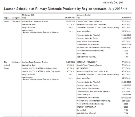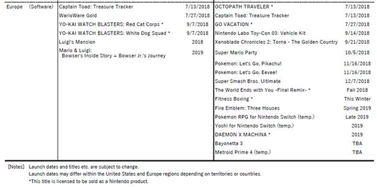 以下是截止至2018年7月已经公布将登陆欧美及日本市场的任天堂第一方游戏阵容: