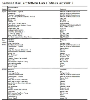 以下是截止至2018年7月第三方厂商公布的Switch游戏阵容: