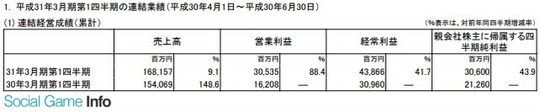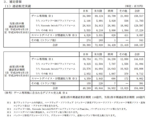 日本游戏大厂任天堂今天下午公布了2019年3月期第1四半期(2018年4月1日至2018年6月30日)的财报,报告称公司第一季度销售额为1681亿日元(同比去年同期增长9.1%),营业利润为305亿日元(同比增长88.4%),经常利润为438亿日元(同比增长41.7%),最终的净利润为306亿日元(同比增长43.9%),整体呈大幅增收增益状态。海外市场销售额为1287亿日元,占公司总销售额的76.6%。
