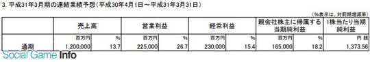 最后,任天堂公司公布了2019年3月期的通期财报预想(2018年4月1日至2019年3月31日),预计全年销售额为12000亿日元(同比前期增长13.7%),营业利润为2250亿日元(同比增长26.7%),经常利润为2300亿日元(同比增长15.4%),净利润则为1650亿日元(同比增长18.2%)。