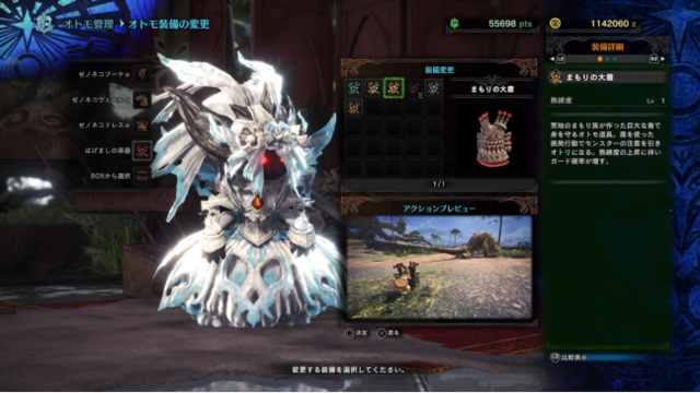 再稍微走一小段路就可以来到他们的营地,之后就可以获得这件猫装备了。 【大蚁塚荒地】 守护大盾 装备这个道具之后,随从猫就可以嘲讽怪物,把怪物对猎人的仇恨转移到自己的身上。随着熟练度上升,防御率也会有所提升。
