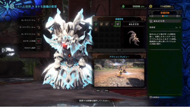 【龙结晶之地】 奇面族的壶爆弹 装备之后,随从猫就可以使用奇面族的壶爆弹和攻击用的小装备。