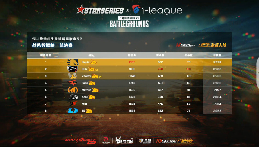 绝地求生SLI2落幕:Liquid夺冠,迪瑞克斯继续书写电竞椅神话