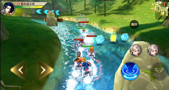 蜀友们通过天书进入活动匹配等待界面,当玩家双方满足3V3匹配人数时,即会显示准备按钮。当全员六人统一完成准备工作,画面一转直接进入开赛倒计时。此时所有玩家将化身为同职业Q版人物,骑乘在摩托艇上蓄势待发。当比赛正式开启,随着玩家们不同的操作水平,前后的名次渐渐显露出来。