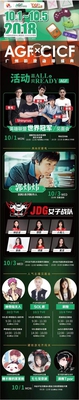 活动赛事 英雄联盟世界冠军见面会、王者争霸·荣耀之战水友赛、《第五人格》广州邀请赛、JDG女子战队水友娱乐见面会、DOTA2广东高校邀请赛、企业杯大奖赛、B站up主见面会、Switch游戏大闯关、《怪物猎人 世界》&《战神》 水友挑战赛、体育游戏对抗赛等精彩赛事在AGF电竞舞台+互动舞台邀请你来参与!燃爆全场! 金龙奖COSPLAY全国超级大赛、星舞银河全国宅舞大赛、漫次元系列COSPLAY大赛、宅舞赛、燃歌赛、超萌星大赛等将在CICF主舞台进行!