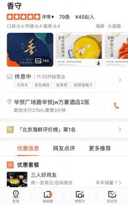香守金汤花胶鸡汤,其最重要的原材料为来自清远的走地鸡配合极品花胶,经过4小时的精心熬煮,终成味道鲜香的花胶鸡汤。食材鲜、味道正是香守餐厅的主要特色,仅在试营业期间,餐厅就获得大众点评口味、环境、服务均达到9.4分的超高评分,荣获大众点评北京海鲜评价榜第一名。