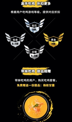 同时,香守的线下吃鸡邀请赛,让更多的游戏好友走出虚拟世界在线下相聚,并肩作战全力吃鸡,从10月12日-30日,玩家们可以在大众点评优惠基础上,凭借游戏等级再享吃鸡套餐折上折。高手吃鸡,折扣更多,白银-9.5折,黄金-9折,铂金-8.5折,钻石-8折,是凭游戏吃饭没错了!此外,带妹来用餐的吃鸡达人,购买吃鸡套餐,免费赠送一份杨枝甘露。