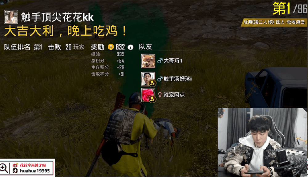 刺激战场:花花开创喷子20连杀吃鸡纪录!百万观众在线见证!