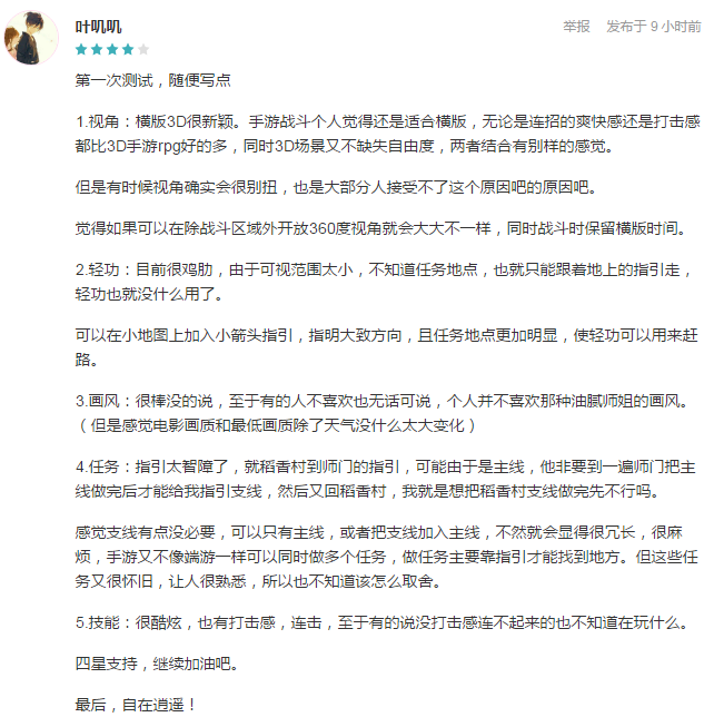 【引言】 《剑网3》自2009年发行至今已经走过了9个年头,这个由西山居自研发行的3D武侠MMO可以称之为中国网游史上最知名的武侠游戏IP。 在这9年间,国民级武侠游戏IP《剑网3》几乎辐射了动漫、文学、影视等各类泛娱乐产业,不断的进行IP价值释放和内容再创作,不仅对IP自身进行了反哺,也成为了传播中国传统武侠文化的和对外文化输出的主力军,这也与本届TGC2019的主旨不谋而合。TGC这个由腾讯官方面向腾讯游戏玩家、腾讯游戏开发商、腾讯游戏合作伙伴举办的以线上互动体验和线下娱乐展会为核心内容的年度游戏盛典,逐渐成为承担腾讯文化产业内容聚合、体验平台及长线文创品牌的重要载体。《剑网3:指尖江湖》也将代表《剑网3》IP亮相TGC,为玩家们诠释IP价值不一样的一面。 12月28日,由西山居《剑网3》端游原版人马倾力制作,腾讯游戏独家代理发行的《剑网3》正统手游作品《剑网3:指尖江湖》正式开启了安卓限量测试,这款在《剑网3》基础上进行了创新再造移动端续作能否延续《剑网3》的辉煌呢? 【《剑网3》系列手游矩阵急先锋 开测当日好评如潮 】 在游戏产业步入手游红利时代后,各厂商争先恐后的将自家的经典端游IP进行移动端改编,但西山居在其中是个异类,其并没有忙于将家喻户晓的《剑网3》制作为手游,而是坚持着精雕细琢和对IP价值负责的态度,不断的探索着真正适合《剑网3》的移动化之路。 《剑网3:指尖江湖》由端游原班人马操刀制作,西山居CEO、《剑网3》系列制作人郭炜炜担任游戏制作人。其团队不仅有着多年积累下来的深厚研发经验,更重要是以郭炜炜为首的全团队成员都秉着“匠心”精神,不惜耗费数年时间对游戏不断调优,只为了让《剑网3》这个IP能够长久且多元化的发展下去,力求给玩家带来一个用心做的江湖。 郭炜炜曾在发布会上谈及《剑网3:指尖江湖》时说过,“如何让武侠被更多年轻人接纳和喜爱,我们考虑的是‘再造’:合理地运用IP的积淀,让它焕发新的生命力。” 郭炜炜 在经过长时间的铺垫和积累后,在TapTap预约量接近32万,评分常年高于8分,作为腾讯评分最高RPG手游的《剑网3:指尖江湖》终于向广大玩家揭开了神秘的面纱。开测首日收获无数好评,虽然游戏在测试阶段仍有不足之处,但玩家更多的还是持着包容和期待改进的想法提出建议,官方工作人员对玩家的建议也进行了积极响应。 那么这款西山居始终秉着“匠心”精神潜心研发多年的《剑网3:指尖江湖》,究竟是通过怎样的方式在移动端实现突围,收获良好市场反馈的呢? 【亮相TGC疯狂吸睛 展示传统文化别样的美】 《剑网3:指尖江湖》的TGC2019,既是十年TGC经典的延续,也是TGC腾讯数字文创节的第一次亮相,这一次,腾讯一线顶级IP将在成都环球中心的潮流商业圈中集结碰撞,围绕众IP构建的虚拟现现实体验,在加入了数字文化核心思想后,必将重塑IP沉浸式体验的新生态。中华上下五千年的历史创造了数不尽的传统文化财富,华夏文明孕育的精神和艺术宝藏始终是中国最大的IP。而传统文化的继承与保护也成了现代数字文化创意产业关注的重点与核心。 《剑网3:指尖江湖》作为国风武侠经典IP,初心不负指尖相逢。此次TGC现场《剑网3:指尖江湖》将与非遗项目上海花样经剪纸艺术合作合作,打造经典门派纯阳、少林、天策、七秀、万花的剪纸艺术作品,并在游戏内进行美术风格植入,在游戏中演绎中华民族多样灿烂的国风文化,让传统艺术文化以剑网3手游为载体在指尖传承,更多的热点IP结合数字文创也将会在TGC现场为我们创造更多的惊喜。 【老IP新内核 匠心打造移动端的写意江湖】 作为一款经典IP的移动端续作,《剑网3:指尖江湖》首先围绕“源于IP,忠于IP”的核心理念,深度还原了端游中的经典场景、门派、轻功以及世界观剧情,其中剧情作为端游的招牌卖点之一,在该作中得到了近乎完美的继承与延展。 天策轻功展示(GIF图,放在文件夹中) 近年来许多手游以“附属品”的态度对待游戏剧情设计,这与西山居的“匠心”精神是背道而驰的,要知道《剑网3》的成功与其游戏剧情中蕴含的中华传统文化密不可分,相信《剑网3:指尖江湖》在剧情上的细心打磨能够为整个行业带来一些新的启发。 《剑网3:指尖江湖》在画风上更加年轻化,美术风格更偏向小而美的精致国风,有着出众的光影渲染和纹理材质,与市面上的其他RPG手游做出了明显的差异化,整体画风更加贴合当下年轻人的审美偏好。 在玩法上,《剑网3:指尖江湖》选用了更轻度更贴合移动端体验的RPG动作闯关,告别了千篇一律的数值对冲,而是在人物连招、格挡闪避反击、破招等维度丰富了战斗的可玩性。另外游戏在关卡设计中还在策略、趣味等维度进行了深化,例如玩家偶尔需要通过“开锁”“跳书柜”等方式破解诸如关卡巡逻守卫之类的障碍。 2018年是移动电竞腾飞的一年,但目前真正称得上成熟的移动电竞产业仅有MOBA,动作手游在竞技方面几乎是空白一片。而《剑网3:指尖江湖》凭借较强的可操作性与动作向竞技性,结合论剑、名剑大会等现有PVP模式的进一步升级,今后未尝没有机会领衔动作游戏品类在移动电竞领域实现突围。 游戏中更值得一提的是可媲美单机的沉浸式交互体验,诸如“心眼”模式下的自由探索体验、日月循环晴雨交替的天气变化、趣味小游戏玩法、场景动物