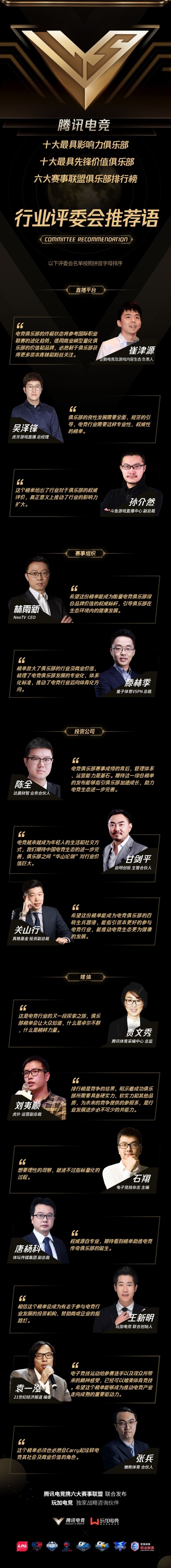 腾讯电竞首个俱乐部TOP榜评委名单公布 多领域助力电竞俱乐部体育化发展