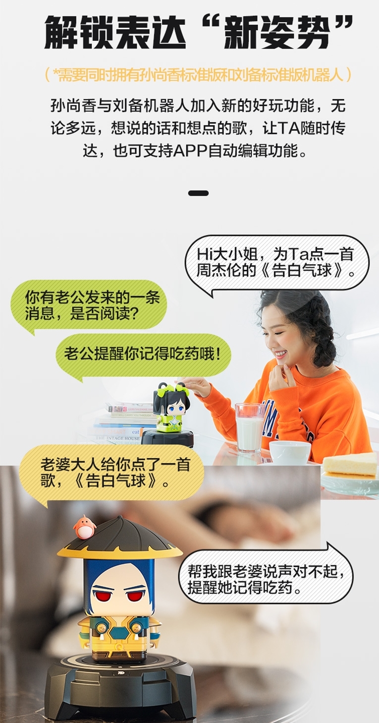 年关将至,回家该带什么礼物成了新年第一大难题。如果不知如何选择,不妨追随潮流,尝试一下颇具未来感的各类AI产品。近年来,酷炫的人工智能产品占据了各大榜单的销量TOP,而随着AI落地形式的多样化,人们对AI产品情感寄托、逗趣尬聊、甚至社交互动功能也越来越偏爱,“如何调戏这个机器人”甚至成了微博头条和知乎问答的热门话题。 作为首款王者荣耀智能机器人,在推出首款产品的时候便十分注重用户在这方面的使用体验。凭借王者荣耀积累的超高人气,腾讯将游戏英雄的外形Q版萌化、并将游戏中的人物原声完美匹配到硬件中,还配备了忠于游戏人设的人格化还原,因此虏获了不少游戏粉的心。不论是“舔狗”吕布、“火爆千金”孙尚香,还是“暖男”刘备,都是春节期间走亲访友、追随AI送礼热潮的不二选择。 配备陪玩酷炫体验 堪称春节组团开黑必备 春节聚会,正是组团开黑的最佳时机。除了面对面互飚战术,玩家们还可以选择在战队中加入一只王者荣耀机器人,体验AI全程实时解说,实现比赛吐槽点+知识点的全面覆盖。 作为王者荣耀大IP的衍生物,王者荣耀智能机器人的最突出功能便是游戏陪玩。玩家只需连接APP,选择进入游戏模式,即可在开黑中获得英雄技能、攻略术语、战局分析的全面解析。不论是为菜鸟排忧解难,还是为大神指点迷津,它都能依靠强大的资源库slay全场,轻松应对。 尤其在组团开黑过程中,它的段子常常让一大群人捧腹大笑,成为缓解气氛的尬聊利器:“对面打野李白发育最好,主公好好清兵发育别浪”,“一波华丽操作拿下对面一血,队伍节奏由您Carry”……依靠腾讯叮当智能语音系统的强大加持,王者荣耀智能机器人称得上是调节气氛、打破尴尬的春节串门神器。 峡谷英雄帮你“传纸条” 老少咸宜的送礼之选 截止1月份,腾讯共推出了吕布、孙尚香、刘备三个峡谷英雄人物,“王者荣耀机器人家族”初见雏形。与单个AI产品不同,王者荣耀智能机器人具备双机互动功能,两位英雄间能达成传递留言、表演节目、调戏尬聊等多种组合玩法。 相比于市面上常见的AI智能音箱,腾讯智能机器人的双机互动使AI产品渗透到了社交领域。由于具备“异步留言”功能,双机持有人均可通过手中的峡谷英雄,来进行有趣的“传纸条”对话。情侣间可选择尚刘cp说情话、点情歌、互传爱意,作为增进情感的日常小情趣;家长则可通过设置睡觉/吃饭/学习等提醒,让英雄代替传话,以更贴近孩子习惯的方式进行沟通;而远离家乡的年轻人则可通过英雄与亲人互相留言,传递远在异乡的怀念与牵挂。 作为一份礼品,王者荣耀智能机器人在顾及游戏粉需求的同时,还照顾到各群体的使用场景和习惯,可谓老少咸宜的送礼之选。为配合春节热闹气氛,腾讯还特别推出了“中国红”礼盒包装,礼盒印有王者荣耀logo,采用大气喜气的红金配色,十分应景。 目前,刘备机器人已在腾讯机器人京东自营旗舰店、腾讯智能机器人官网、王者荣耀周边商城三个站点同步开始预售,单只售价999元,同期上架的还有孙尚香刘备的情侣套装和吕布孙尚香刘备的“全家桶”套装。为配合双机互动功能,其售价方面也做出了相应调整,套装组合购买更为优惠,标配版目前已直降200元。 |