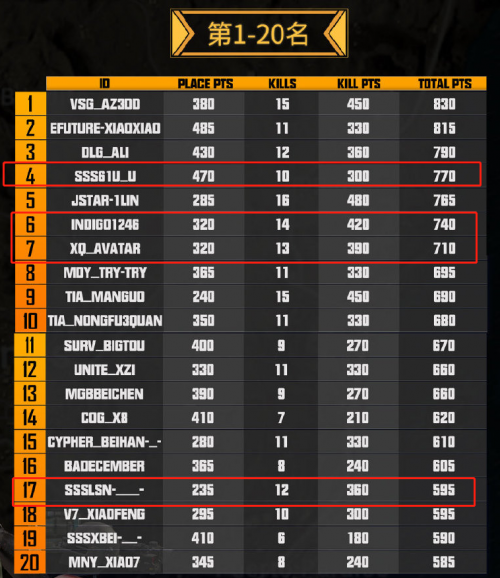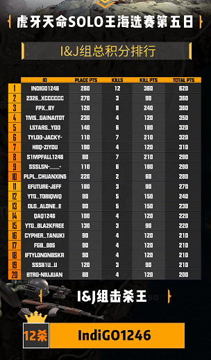 吃鸡大神千万万,谁才是绝地求生的SOLO王?首季“虎牙天命SOLO王”比赛于1月15日开赛,赛事将持续到1月27号。国内顶尖职业俱乐部共计超过400位风格迥异的选手汇聚“虎牙天命SOLO王”比赛。大赛共计展开72次精彩对决,选手将历经海选赛、复活赛和总决赛72场鏖战争夺冠军、争夺总计30万元的赛事奖金!同时本次大赛将首次引用虚拟演播厅技术将游戏内场景真实还原至现场、并首创赛事虚拟交互动态捕捉系统来呈现影视级效果为观众带来前所未有的视觉体验!虎牙还提供第一大神视角,让你随时跟上大神的赛场操作,Pick你心仪的人气选手!吃鸡大神之间的巅峰之战一触即发! 来到海选赛的第五日,Lstars战队的最强刚枪王YDD找回状态,在月I&J组对决中YDD两波火力全开,上演精彩的极限反杀,赢得了这场比赛的胜利。相信在之后的比赛中YDD依然能保持状态稳健carry,大杀四方。 在海选赛中,超人气战队SSS战队的Xbei以决赛圈“天命之子”的姿态,他在决赛圈中兵不血刃成功吃鸡。不得不说天选之人的吃鸡方式就是与众不同,Xbei在接下来的比赛中还会有哪些“天选”操作,还是非常值得期待的。 海选赛上, 1246战队在I&J组表现出刚枪猛男队水平、IndiGO、S1MPFALL和QAQ占据I&J组对决前二十名,IndiGO更是以12杀拿下击杀王称号,1246全队势头猛烈,有望冲击冠军荣誉,实力不可小觑。 同样海选亮眼的还有F&H组Ark战队的FnGO,FnGO在决赛圈使用声东击西打法,投掷烟雾弹迷惑CYPHER战队的BeiHan- -后成功吃鸡!同时BeiHan- -表现亮眼,完成七杀!两人出色的表现为吃鸡粉们带来了一场精彩的吃鸡比拼。 至此,虎牙天命SOLO王海选赛420名选手历经30场鏖战,积分前128名选手成功挺进突围赛。海选赛上,虎牙直播签约战队RNG战队选手单排能力出色,肥猫、Mo、跳跳虎、帅帅和纪云纷纷冲进突围赛。而人气极高的4AM遭遇滑铁卢,九名成员到突围赛仅剩五名!4AM醒目和永远未进入下一轮,MA4夏天、VV和二星同样无缘突围赛。4AM韦神上演精准控分,积分排名124名,进入突围赛。韦神粉丝们直呼今天猪年怪不得马德伟成功保级。 虎牙天命SOLO王突围赛将于1月20日火热开打,赛事齐聚Lstars战队的YDD、4AM的孤存和韦神、XQ战队的avatar、SSS战队的李思楠和17战队的猴王,到底谁能继续挺进总决赛向SOLO王之位发起冲击?熟习SOLO赛老阴比套路的选手们在突围赛又将如何表现?锁定虎牙天命SOLO王,我们一起拭目以待! |