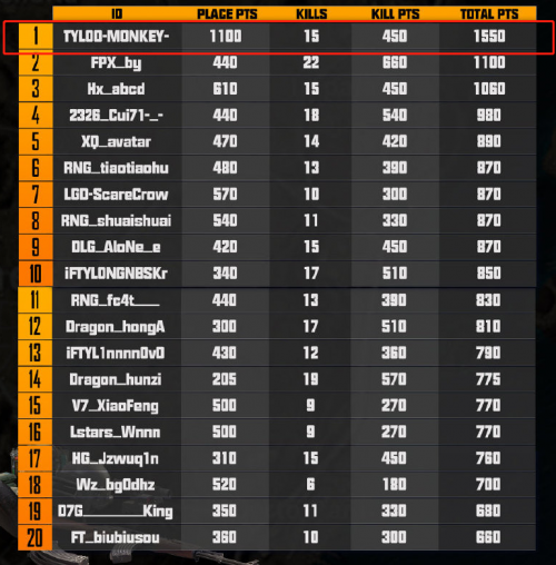 虎牙首季“虎牙天命SOLO王”比赛突围赛阶段已经正式落幕,汇聚4AM、MA4、17、Lstars等战队顶级选手的实力个人秀重磅来袭,同时还包含着“同门”之间的针锋相对,如今晋级名单已经全部出炉,那么64位选手你更青睐哪一位呢? 据了解,在比赛中4AM战队和MA4战队因团建少打三盘,因此在突围赛的过程中与其他战队的积分相差较大,最终无一人挺进前60名,但依靠着粉丝们的拉票,孤存、韦神和龙宗泉成功复活晋级,不过龙宗泉因回家布谷鸟成功顶上复活名额。在决赛能够再度欣赏顶级选手的刚枪秀,实在是一种享受。 与此同时,虎牙天命SOLO王最强女选手MDY-NUNA人气爆棚,作为突围赛女选手的她饱受解说阿梅的青睐并在直播中为其实力拉票,小姐姐遗憾未能凭借积分晋级总决赛后成功通过投票数第三复活晋级,想必不少人都对NUNA在比赛中的表现成绩感到惊喜,所以投票人气能够如此之高,相信NUNA在总决赛中能够带来亮眼的表现! 经历了突围赛中“猴虎大战”后,TYLOO-MONKEY以大比分优势提前锁定虎牙天命SOLO王,突围赛积分排名第一,遥遥领先于第二名,且八局比赛成功吃鸡四盘,两局鸡屁股的成绩令人感叹实力的强劲。反观RNG战队,跳跳虎稳扎稳打决赛圈表现出色,肥猫在突围赛天秀操作击杀多人,最终肥猫、跳跳虎和帅帅纷纷挤进突围赛积分前十一名,简直是成了虎牙天命SOLO王最大赢家! 为争夺高达三十万元的丰富奖金,各位顶级选手可谓是使出绝招,历经海选赛、突围赛48场鏖战后,老阴比、蹲蹲侠、伏地魔等趣味打法层出不穷,绝地耿直boy已经不复存在。 同时虎牙天命SOLO王对于击杀达人、跑酷达人、生存达人等还设置了趣味奖项,那么漫游打法的孤存势必会获得更多惊喜。虽然4AM老板娘宣布离开,但是4AM与MA4两支战队依旧会在舞台继续书写传奇,期待韦神、孤存和布谷鸟在决赛的最终表现。 纵观整个榜单,PCPI S2冠军队17战队近乎全军覆没,老牌强队Lstars战队战绩惨败,足以看出虎牙天命SOLO王打法创新,新势黑马屡出不穷,对于顶级选手也是不小的挑战,让我们共同期待虎牙天命SOLO王总决赛!虎牙提供明星选手第一视角,蓝光高清不卡顿极致观赛体验值得期待! |