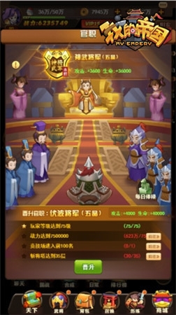 在37《我的帝国》游戏中,除了武将本身有自己的官职外,每位玩家也有自己独立的官职,官职越高,会比其他平民玩家多出不少的好处和优惠。下面,小编就带领大家走近这些官职,让我们一起来了解升官的机制。 《我的帝国》官网: http://h5.37.com/wddgh5/?refer=h5_37yypt&uid=wddgh5_yxchart 37《我的帝国》内共设有9个品级的官职,当玩家在游戏里达到不同的条件时,即可对官职进行晋升,晋升官职可以提高主公的攻击值和生命值,同时,官职越高,玩家每日可领取的俸禄也越丰富。 在37《我的帝国》中,还有宝石系统可让玩家提升战力,它们分别为:攻击宝石、物防宝石、法防宝石和生命宝石四种。等级由1级上升到10级,等级越高,属性越强。消耗四个同等级的宝石可以合成高一等级的宝石,若将宝石佩戴在武将身上,还可提高武将的对应属性。 当37《我的帝国》中的主公等级达到60级时,还可以开启符文系统,想必大家都玩过农药吧,可想而知,英雄在对战的时候,往往是符文拉开了差距,而在37《我的帝国》,当符文装备在武将身上时,可以分别提高武将的攻击、物防、生命、命中、闪避、抗暴、暴击和法防属性,让你在对战中事半功倍! 37《我的帝国》是一款大型角色扮演类Html5卡牌游戏。游戏以三国争霸为背景,再现三国战争的恢弘场景,玩家可以通过召唤武将,排兵布阵,攻城掠池,一统十三州。更有武将进行升级、进阶和技能提升,获取装备,提升战力等多种丰富玩法,功能多样,其放置类的玩法能让你解放双手。 更多37《我的帝国》游戏详情请登陆: http://h5.37.com/wddgh5/?refer=h5_37yypt&uid=wddgh5_yxchart 更多好玩的网页游戏尽在37游戏:http://www.37.com/ 了解更多相关信息,请前往http://game.yzz.cn/html/info-7492.html |