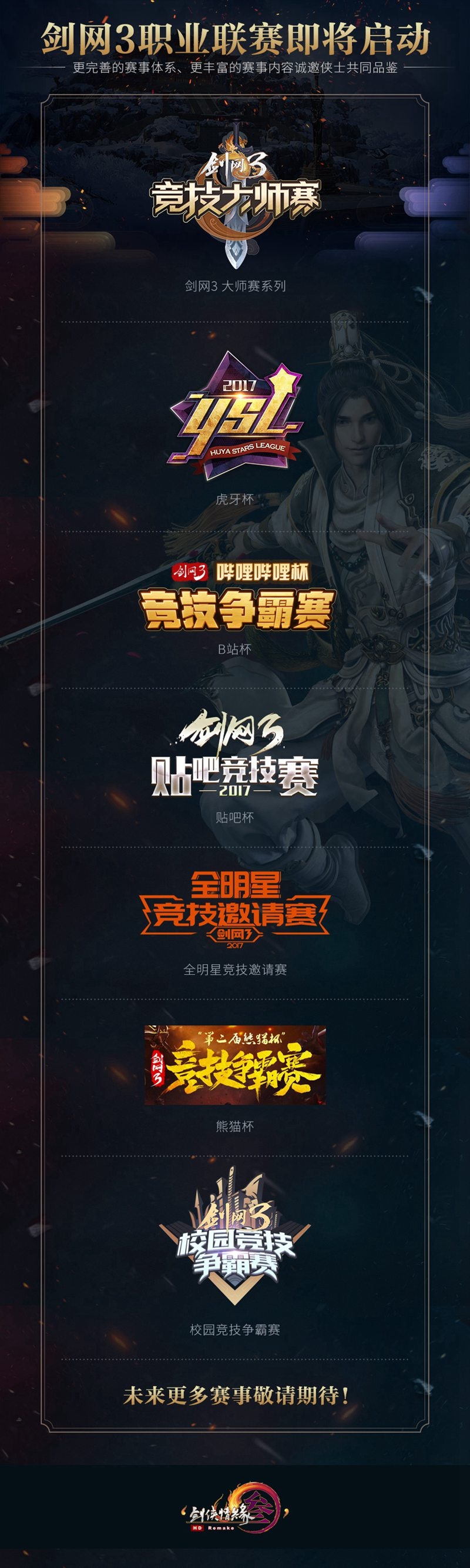 回顾《剑网3》赛事的过去三年,一分耕耘一分收获,《剑网3》朝着专业电竞的道路不断前进,感谢侠士们对赛事的关注与一路陪伴。 2016年,《剑网3》赛事正式登上舞台,预示着《剑网3》竞技专业化的开始;2017年,《剑网3》举办了第一次线下竞技争霸赛,观众热情燃爆场馆;2018年,第三届《剑网3》竞技大师赛全平台观看峰值突破千万,应援足迹遍布世界;2019年,《剑网3》职业俱乐部的成立在业内引发广泛关注。《剑网3》赛事在不断完善赛事机制的同时,寻求着新的突破。 2019年注定是《剑网3》品牌赛事的全新起点。 《剑网3》职业联赛的正式启动,代表着《剑网3》赛事体系的进一步发展。职业联赛体系的创建,使现有赛事趋向成熟化、专业化,在扩大赛事规模的同时,也将推动《剑网3》品牌赛事达到新的高度。 【赛事全新升级 全年精彩不停】 《剑网3》职业联赛是《剑网3》官方主办的具有周期性赛制的联盟赛事,每赛季将从新秀选拔赛开始覆盖至次年联赛总决赛。《剑网3》将在赛季中,通过每次赛事的排名对各个战队进行积分累计,并授予相应联盟荣誉,获得来自联盟不同级别资源支持。 《剑网3》职业联赛体系: 1.剑网3新秀选拔赛(9月) 2.剑网3校园竞技赛(10-11月) 3.剑网3城市争霸赛(12月) 4.剑网3竞技大师赛(3-5月) 5.剑网3授权媒体杯赛(6-7月) 6.剑网3周年庆年度总决赛(联赛总决赛,7-8月) 《剑网3》职业联赛报名条件: 1.通过官方认证的俱乐部职业战队 2.通过官方认证的个人战队 【全新联赛章程 彰显专业风范】 竞技公平是保证赛事质量的前提。未来《剑网3》赛事将加强职业平衡调整的力度、增加调整周期,维护良好的竞技环境;在比赛过程将中将引入专业的反外挂、代打、代练评判机制(包括手速apm核实,硬件外设规范等),对违反赛事手册、破坏竞技公平性的行为严惩不贷。 在人才培养方面,选手手册将作进一步的细化整理及漏洞完善,未来将有更专业的选手条约、更规范的主播条约出台,以约束选手及主播的个人行为。《剑网3》赛事将筹建全新的裁判培训体系及解说培训体系,培养出更专业的裁判与解说,在增强赛事专业性的同时,使赛事过程更为趣味易懂。 在观战体验方面,《剑网3》赛事将针对OB、BP视角进行改造,推出全新的回放视角系统,让观众能够自由复盘经典战斗场面。同时,江湖Daily APP将加入模拟对战工具,更智能化的数据推荐与更深入的数值分析功能,可让参赛选手在赛前进行充分准备。 我们将对通过《剑网3》官方认证的职业俱乐部进行统一的监督与管理,并提供相应的扶持资源。将为通过认证的俱乐部开放专业的数据化分析工具、软硬件支持、甚至提供独立服务器等,为选手创造更好的训练环境,还有全新的约战机制即将呈现。 职业联赛具体章程及计划将在第四届竞技大师赛前公布,《剑网3》赛事会与专业电竞机构合作沟通,收集并听取专业意见,根据实际情况对其进行修订。 【超大规模打造全明星赛事 职业联赛年度总决赛定档周年庆】 《剑网3》职业联赛年度总决赛将联合多支顶尖《剑网3》俱乐部职业战队共同打造,是现有赛事体系当中规模最大的赛事。今年起,用我们的电竞激情点燃周年庆会场! 在赛季末的赛程汇总环节,依照由高至低的积分排序,排名在前的多支俱乐部队伍将进入到《剑网3》周年庆职业联赛年度总决赛的受邀名单当中,获得角逐职业联赛桂冠的权利。 超豪华战队阵容、前所未有的流量关注。俱乐部战队成员将在《剑网3》赛事体系的金字塔尖追逐电竞梦想,在现有赛事之中争夺最高荣誉。 《剑网3》职业联赛年度总决赛的举办,将是所有热爱电竞的《剑网3》玩家不可错过的一场视觉盛宴,全新赛事邀您一同见证! 【职业联赛俱乐部联盟成立 会员相关权益曝光】 《剑网3》职业联赛俱乐部联盟(以下简称“联盟”)由《剑网3》官方主办,通过《剑网3》官方认证的《剑网3》职业联赛俱乐部(以下简称“俱乐部”)将作为会员加入联盟。 联盟的成立将有利于俱乐部稳定的运营及发展,通过确立俱乐部的商业模式,维护参赛选手、俱乐部组织者等不同参与者的权益,使得《剑网3》赛事更加高效、规范化,力图将《剑网3》的竞技比赛推向职业电竞的新高度。 《剑网3》将综合俱乐部的整体实力、运作模式、公司背景等,对参与招募的俱乐部进行筛选及审核,最终通过《剑网3》官方认证的俱乐部将会成为联盟会员并享有相应的权益。 我们将在以下时间,开放《剑网3》职业联赛俱乐部的申报和认证工作: 俱乐部提交认证时间: 2019.02.15~2019.02.24 有意投标的俱乐部请提前准备好资料(《剑网3》将在统一时间发放资料申报模板) 详情请咨询QQ:1480229865 通过《剑网3》官方认证的职业联赛俱乐部即成为联盟会员之一,将获得如下权益: 1.联盟会员将享受剑网3职业联赛的优先权; 2.联盟会员享有一支战队直通年度大师赛48强的名额; 3.《剑网3》官方利用自身资源以及各个剑网3的媒体、赛事等平台定期为各个联盟会员进行专业的曝光资源扶持; 4.联盟会员可根据自身需求,在不侵犯《剑网3》相关知识产权的前提下,利用或授权第三方使用其个性特征进行商业赞助推广活动; 5.联盟会员同意接受《剑网3》官方的监督和管理,且同意《剑网3》官方有权根据联盟会员的等级、联赛的周期和运营情况单方面决定或调整联盟会员的权益,是联盟